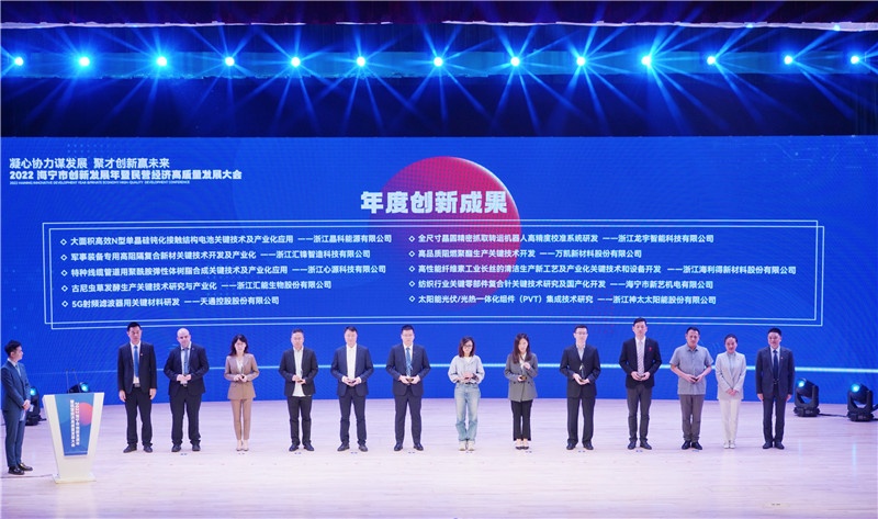 為牢牢把握長三角一體化發展大機遇,深入實施創新驅動戰略,加快建設杭州灣北翼科創樞紐,5月21日下午,“凝心協力謀發展 聚才創新贏未來”2022海寧市創新發展年暨民營經濟高質量發展大會召開,進一步提振企業信心,全力打贏“騰籠換鳥、鳳凰涅槃”攻堅戰,推動海寧市工業經濟高質量發展。市委書記曹國良出席會議并講話。會上對一批年度創新集體和個人進行了表彰,天通榮獲多項榮譽。