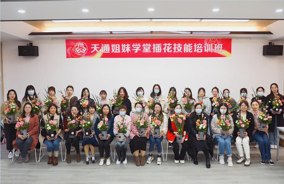 3月8日下午,天通控股姐妹學(xué)堂在培訓(xùn)中心開展了一場“與花相伴 綻放芳華”三八節(jié)插花沙龍活動。50位女職工在此體驗插花藝術(shù),感受插花藝術(shù)帶來的精神享受。本次活動邀請了褚紅亞花藝?yán)蠋熯M行現(xiàn)場指導(dǎo),活動開始前,褚老師從花材處理、色彩搭配、造型布局等方面進行了介紹,并對此次插花的方法和技巧作了現(xiàn)場演繹。在芬芳環(huán)繞中,學(xué)員們拿著剪刀開始修剪花枝,并不斷對花枝的位置、角度等進行調(diào)整,讓自己的花藝作品更加舒展與美麗。在姐妹們的巧手下,一個個雅致的花藝作品在歡聲笑語中誕生了,拍照留念,感受著花開綻放的浪漫。